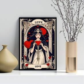 Quadro decorativo carta tarot - love 24x18cm Cor: moldura preta Informações do produto tire todas as suas dúvidas no descritivo abaixo: decoração para quarto, sala, cozinha, escritório, área gourmet e muito mais. Chega de paredes vazias medidas - cada peça tem 24x18cm a5 . Material do papel - papel fotográfico brilhante de altíssima resolução acabamento - todos os quadros são acompanhados de uma película de acetato para proteção da imagem. - os quadros são embalados de forma segura com plástico bolha com camada dupla de acordo com o tamanho dos quadros. - de 3 meses. Meu quadro chegou. Como posso fixá-lo Você precisa apenas de um martelo e um prego, pois os quadros já vão acompanhados de penduradores. Esta é a forma mais indicada. Caso prefira, você pode utilizar uma fita dupla face neste caso, sugerimos de alta qualidade para evitar que descole e seu quadro caia . Como posso limpar meu quadro A limpeza é feita como um móvel comum da sua casa. Apenas um pano seco ou espanador são suficientes para tal Marca: Não Informado Ean: 7891234530073