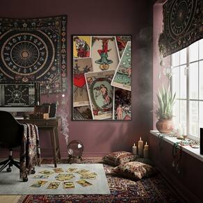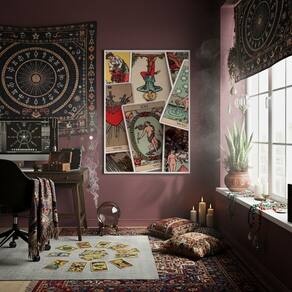Quadro Decorativo Cartas de Tarot - 70x50cm - Cor: Moldura Branca