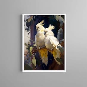 Quadro decorativo casal de cacatuas 45x34cm - com vidro Cor: moldura branca Informações do produto tire todas as suas dúvidas no descritivo abaixo: decoração para quarto, sala, cozinha, escritório, área gourmet e muito mais. Chega de paredes vazias medidas - cada peça tem 45x34cm a3 . Material do papel - papel fotográfico brilhante de altíssima resolução acabamento - todos os quadros são acompanhados de vidro para proteção da imagem. - moldura em madeira maciça na cor preta ou branca conforme produto escolhido e pendurador . - os quadros são embalados de forma segura com plástico bolha com camada dupla de acordo com o tamanho dos quadros. Garantia - garantia de 3 meses. Meu quadro chegou. Como posso fixá-lo Você precisa apenas de um martelo e um prego, pois os quadros já vão acompanhados de penduradores. Esta é a forma mais indicada. Como posso limpar meu quadro A limpeza é feita como um móvel comum da sua casa. Apenas um pano seco ou espanador são suficientes para tal Ean: 7891234539908