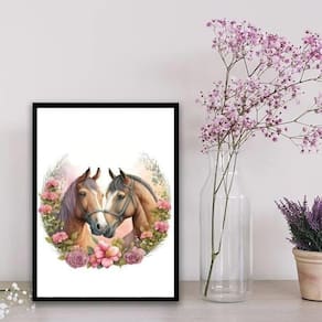 Quadro decorativo casal de cavalos aquarela 45x34cm - com vidro Moldura: madeira preta Informações do produto tire todas as suas dúvidas no descritivo abaixo: decoração para quarto, sala, cozinha, escritório, área gourmet e muito mais. Chega de paredes vazias medidas - cada peça tem 45x34cm a3 . Material do papel - papel fotográfico brilhante de altíssima resolução acabamento - todos os quadros são acompanhados de vidro para proteção da imagem. - moldura em madeira maciça na cor preta e pendurador . - os quadros são embalados de forma segura com plástico bolha com camada dupla de acordo com o tamanho dos quadros. Garantia - garantia de 3 meses. Meu quadro chegou. Como posso fixá-lo Você precisa apenas de um martelo e um prego, pois os quadros já vão acompanhados de penduradores. Esta é a forma mais indicada. Como posso limpar meu quadro A limpeza é feita como um móvel comum da sua casa. Apenas um pano seco ou espanador são suficientes para tal