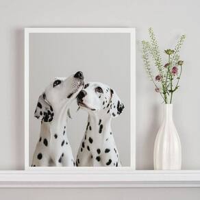 Quadro decorativo casal de dálmatas 45x34cm Cor: moldura branca Informações do produto tire todas as suas dúvidas no descritivo abaixo: decoração para quarto, sala, cozinha, escritório, área gourmet e muito mais. Chega de paredes vazias. Medidas - cada peça tem 45x34cm a3 . Material do papel - papel fotográfico brilhante de altíssima resolução acabamento - todos os quadros são acompanhados de uma película de acetato para proteção da imagem. - os quadros são embalados de forma segura com plástico bolha com camada dupla de acordo com o tamanho dos quadros. - de 3 meses. Meu quadro chegou. Como posso fixá-lo Você precisa apenas de um martelo e um prego, pois os quadros já vão acompanhados de penduradores. Esta é a forma mais indicada. Caso prefira, você pode utilizar uma fita dupla face neste caso, sugerimos de alta qualidade para evitar que descole e seu quadro caia . Como posso limpar meu quadro A limpeza é feita como um móvel comum da sua casa. Apenas um pano seco ou espanador são suficientes para tal Marca: Não Informado