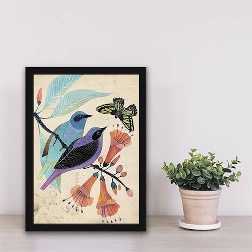 Quadro Decorativo Casal de Passarinhos - Tamanho: A4 (20 x 30) / Acabamento: Película de acetato / Moldura: Madeira preta