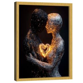 Quadro Decorativo Casal Fios de Metal Moldura Dourada - 84x54cm -