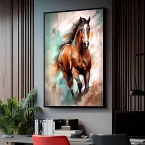 Quadro Decorativo Cavalo Abstrato Moldura Preta - 60x40cm -