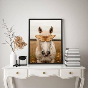 Quadro decorativo cavalo com borboleta 33x24cm - com vidro Cor: moldura branca Informações do produto tire todas as suas dúvidas no descritivo abaixo: decoração para quarto, sala, cozinha, escritório, área gourmet e muito mais. Chega de paredes vazias medidas - cada peça tem 33x24cm a4 . Material do papel - papel fotográfico brilhante de altíssima resolução acabamento - todos os quadros são acompanhados de vidro para proteção da imagem. - moldura em madeira maciça na cor preta ou branca conforme produto escolhido e pendurador . - os quadros são embalados de forma segura com plástico bolha com camada dupla de acordo com o tamanho dos quadros. - de 3 meses. Meu quadro chegou. Como posso fixá-lo Você precisa apenas de um martelo e um prego, pois os quadros já vão acompanhados de penduradores. Esta é a forma mais indicada. Como posso limpar meu quadro A limpeza é feita como um móvel comum da sua casa. Apenas um pano seco ou espanador são suficientes para tal