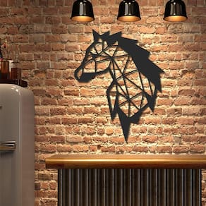 Especificações Técnicas: Medidas: comprimento: 39 cm altura: 3mm largura: 49 cm Material: mdf 3mm Cor: preto Tema: cavalo Formas de instalação: basta utilizar fitas dupla face Quantidade: 1 unidade