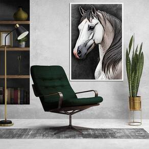 Quadro Decorativo Cavalo Sala Moldura Branca Cx Alta 40x60