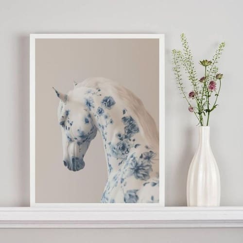 Quadro decorativo cavalo soft flores azuis 45x34cm - com vidro Cor: moldura branca Informações do produto tire todas as suas dúvidas no descritivo abaixo: decoração para quarto, sala, cozinha, escritório, área gourmet e muito mais. Chega de paredes vazias medidas - cada peça tem 45x34cm a3 . Material do papel - papel fotográfico brilhante de altíssima resolução acabamento - todos os quadros são acompanhados de vidro para proteção da imagem. - moldura em madeira maciça na cor preta ou branca conforme produto escolhido e pendurador . - os quadros são embalados de forma segura com plástico bolha com camada dupla de acordo com o tamanho dos quadros. - de 3 meses. Meu quadro chegou. Como posso fixá-lo Você precisa apenas de um martelo e um prego, pois os quadros já vão acompanhados de penduradores. Esta é a forma mais indicada. Como posso limpar meu quadro A limpeza é feita como um móvel comum da sua casa. Apenas um pano seco ou espanador são suficientes para tal