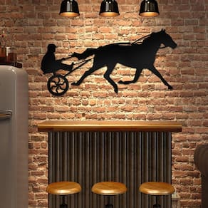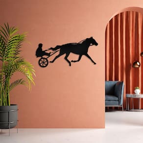 Especificações Técnicas: Medidas: comprimento: 59 cm altura: 3mm largura: 28 cm Material: mdf 3mm Cor: preto Tema: cavalo Formas de instalação: basta utilizar fitas dupla face Quantidade: 1 unidade