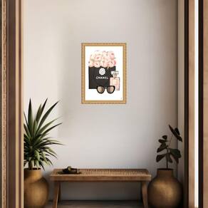 Quadro decorativo chanel flores 24x18cm - com vidro Cor: moldura branca Informações do produto tire todas as suas dúvidas no descritivo abaixo: decoração para quarto, sala, cozinha, escritório, área gourmet e muito mais. Chega de paredes vazias medidas - cada peça tem 24x18cm a5 . Material do papel - papel fotográfico brilhante de altíssima resolução acabamento - todos os quadros são acompanhados de vidro para proteção da imagem. - moldura em madeira maciça na cor preta ou branca conforme produto escolhido e pendurador . - os quadros são embalados de forma segura com plástico bolha com camada dupla de acordo com o tamanho dos quadros. Garantia - garantia de 3 meses. Meu quadro chegou. Como posso fixá-lo Você precisa apenas de um martelo e um prego, pois os quadros já vão acompanhados de penduradores. Esta é a forma mais indicada. Como posso limpar meu quadro A limpeza é feita como um móvel comum da sua casa. Apenas um pano seco ou espanador são suficientes para tal