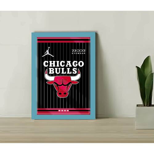 Quadro Decorativo Chicago Bulls Black+ Vidro 33x25 Escrtório - Cor: Azul