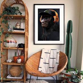 Quadro decorativo chimpanzé de fone 60x48cm Moldura: madeira preta Informações do produto tire todas as suas dúvidas no descritivo abaixo: decoração para quarto, sala, cozinha, escritório, área gourmet e muito mais. Chega de paredes vazias medidas - cada peça tem 60x48cm . Material do papel - papel fotográfico brilhante de altíssima resolução acabamento - todos os quadros são acompanhados de vidro para proteção da imagem. - moldura em madeira maciça na cor preta ou branca conforme produto escolhido e pendurador. - paspatur branco com 7cm de largura - os quadros são embalados de forma segura com plástico bolha com camada dupla de acordo com o tamanho dos quadros. Garantia - garantia de 3 meses. Meu quadro chegou. Como posso fixá-lo Você precisa apenas de um martelo e um prego, pois os quadros já vão acompanhados de penduradores. Esta é a forma mais indicada. Como posso limpar meu quadro A limpeza é feita como um móvel comum da sua casa. Apenas um pano seco ou espanador são suficientes para tal