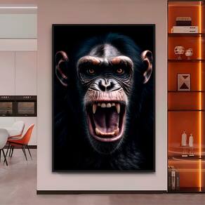 Quadro Decorativo Chimpanzé Nervoso Moldura Preta - 118x78cm -