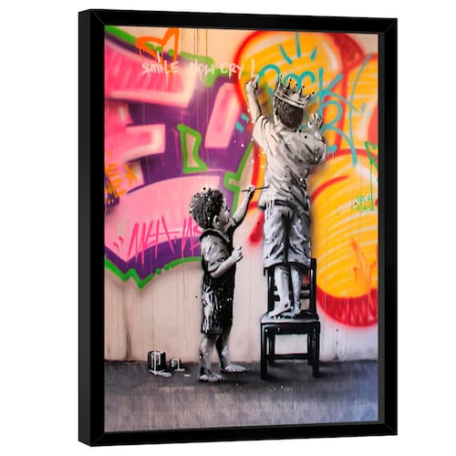 Quadro Decorativo Chora Agora, Ri depois Moldura Preta - 84x54cm -