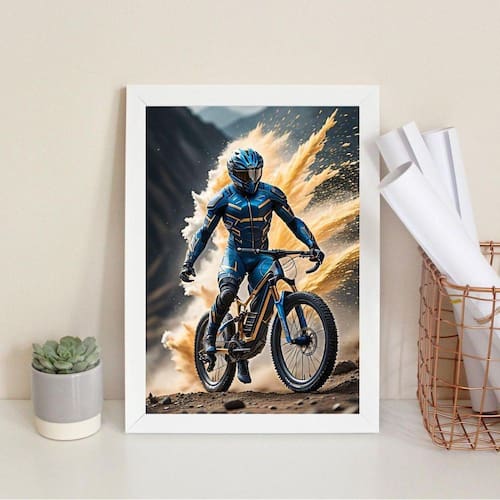 Quadro decorativo ciclista- mountain bike 33x24cm Moldura: madeira preta Informações do produto tire todas as suas dúvidas no descritivo abaixo: decoração para quarto, sala, cozinha, escritório, área gourmet e muito mais. Chega de paredes vazias medidas - cada peça tem 33x24cm a4 . Material do papel - papel fotográfico brilhante de altíssima resolução acabamento - todos os quadros são acompanhados de uma película de acetato para proteção da imagem. - os quadros são embalados de forma segura com plástico bolha com camada dupla de acordo com o tamanho dos quadros. Garantia - garantia de 3 meses. Meu quadro chegou. Como posso fixá-lo Você precisa apenas de um martelo e um prego, pois os quadros já vão acompanhados de penduradores. Esta é a forma mais indicada. Caso prefira, você pode utilizar uma fita dupla face neste caso, sugerimos de alta qualidade para evitar que descole e seu quadro caia . Como posso limpar meu quadro A limpeza é feita como um móvel comum da sua casa. Apenas um pano seco ou espanador são suficientes para tal Ean: 7897344603942