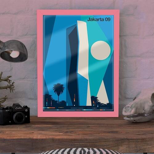 Design Vibrante: O quadro apresenta uma arte pop colorida e estilizada da cidade de Jakarta, capturando sua energia e dinâmica urbana de forma única e moderna.