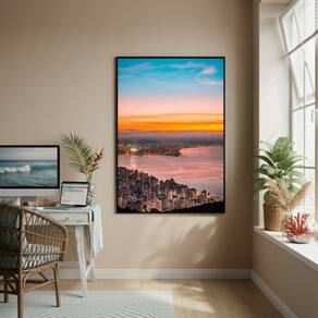 Quadro Decorativo Cidade Litoral-70x50cm - Cor: Moldura Preta