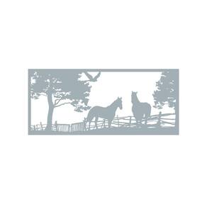Quadro Decorativo Cinza Mdf Cavalos No Campo 40X20Cm