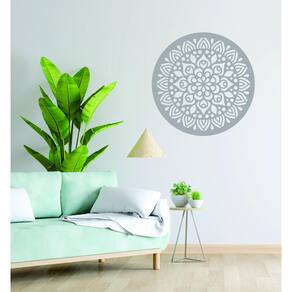 Quadro Decorativo Cinza Mdf Mandala Floral 40X20Cm