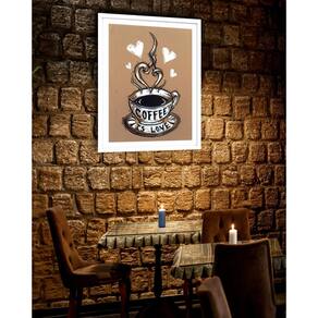 Quadro decorativo coffee is love - 70x50cm Cor: moldura branca Informações do produto tire todas as suas dúvidas no descritivo abaixo: decoração para quarto, sala, cozinha, escritório, área gourmet e muito mais. Chega de paredes vazias medidas - cada peça tem 70x50cm . Material do papel - papel fotográfico brilhante de altíssima resolução acabamento - todos os quadros são acompanhados de vidro para proteção da imagem. - moldura em madeira maciça na cor preta ou branca conforme produto escolhido e pendurador. - os quadros são embalados de forma segura com plástico bolha com camada dupla de acordo com o tamanho dos quadros. - de 3 meses. Meu quadro chegou. Como posso fixá-lo Você precisa apenas de um martelo e um prego, pois os quadros já vão acompanhados de penduradores. Esta é a forma mais indicada. Como posso limpar meu quadro A limpeza é feita como um móvel comum da sua casa. Apenas um pano seco ou espanador são suficientes para tal Marca: Não Informado Ean: 7901039770472