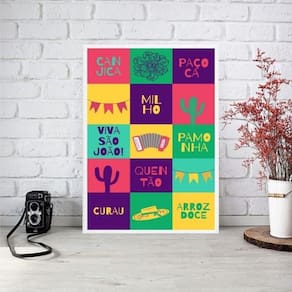 Quadro decorativo comidas de festa junina - arraiá 45x34cm - com vidro Cor: moldura preta Informações do produto tire todas as suas dúvidas no descritivo abaixo: decoração para quarto, sala, cozinha, escritório, área gourmet e muito mais. Chega de paredes vazias medidas - cada peça tem 45x34cm a3 . Material do papel - papel fotográfico brilhante de altíssima resolução acabamento - todos os quadros são acompanhados de vidro para proteção da imagem. - moldura em madeira maciça na cor preta ou branca conforme produto escolhido e pendurador . - os quadros são embalados de forma segura com plástico bolha com camada dupla de acordo com o tamanho dos quadros. - de 3 meses. Meu quadro chegou. Como posso fixá-lo Você precisa apenas de um martelo e um prego, pois os quadros já vão acompanhados de penduradores. Esta é a forma mais indicada. Como posso limpar meu quadro A limpeza é feita como um móvel comum da sua casa. Apenas um pano seco ou espanador são suficientes para tal Ean: 7908991765041