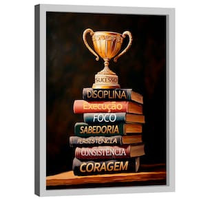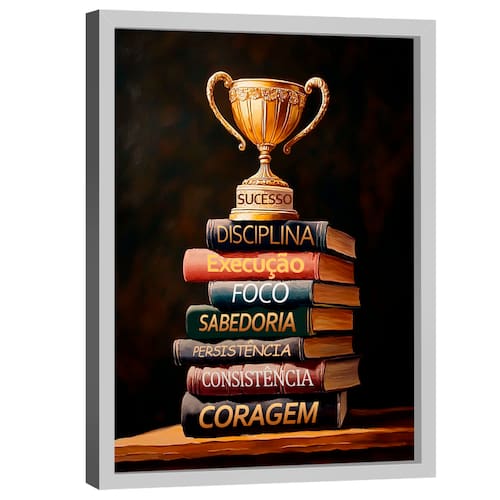 Quadro Decorativo Conhecimento é Sucesso Moldura Branca - 180x105cm -