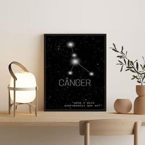 O Quadro Decorativo Constelação Signo Câncer é perfeito para decorar diversos ambientes, como quarto, sala, cozinha, escritório e área gourmet. Chega de paredes vazias! Com medidas de 33x24cm A4 , esse quadro vai adicionar charme e personalidade ao seu espaço.