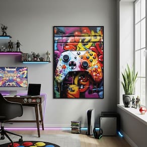Quadro Decorativo Controle XBOX Branco-70x50cm Mold Preta
