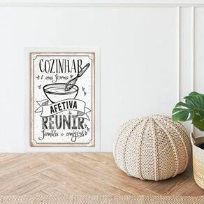 Quadro decorativo cozinha afetiva 33x24cm Moldura: madeira preta Informações do produto tire todas as suas dúvidas no descritivo abaixo: decoração para quarto, sala, cozinha, escritório, área gourmet e muito mais. Chega de paredes vazias medidas - cada peça tem 33x24cm a4 . Material do papel - papel fotográfico brilhante de altíssima resolução acabamento - todos os quadros são acompanhados de uma película de acetato para proteção da imagem. - os quadros são embalados de forma segura com plástico bolha com camada dupla de acordo com o tamanho dos quadros. Garantia - garantia de 3 meses. Meu quadro chegou. Como posso fixá-lo Você precisa apenas de um martelo e um prego, pois os quadros já vão acompanhados de penduradores. Esta é a forma mais indicada. Caso prefira, você pode utilizar uma fita dupla face neste caso, sugerimos de alta qualidade para evitar que descole e seu quadro caia . Como posso limpar meu quadro A limpeza é feita como um móvel comum da sua casa. Apenas um pano seco ou espanador são suficientes para tal