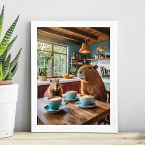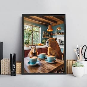 Quadro decorativo cozinha - capivaras 45x34cm Moldura: madeira preta Informações do produto tire todas as suas dúvidas no descritivo abaixo: decoração para quarto, sala, cozinha, escritório, área gourmet e muito mais. Chega de paredes vazias. Medidas - cada peça tem 45x34cm a3 . Material do papel - papel fotográfico brilhante de altíssima resolução acabamento - todos os quadros são acompanhados de uma película de acetato para proteção da imagem. - os quadros são embalados de forma segura com plástico bolha com camada dupla de acordo com o tamanho dos quadros. Garantia - garantia de 3 meses. Meu quadro chegou. Como posso fixá-lo Você precisa apenas de um martelo e um prego, pois os quadros já vão acompanhados de penduradores. Esta é a forma mais indicada. Caso prefira, você pode utilizar uma fita dupla face neste caso, sugerimos de alta qualidade para evitar que descole e seu quadro caia . Como posso limpar meu quadro A limpeza é feita como um móvel comum da sua casa. Apenas um pano seco ou espanador são suficientes para tal