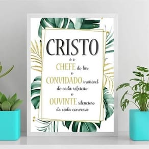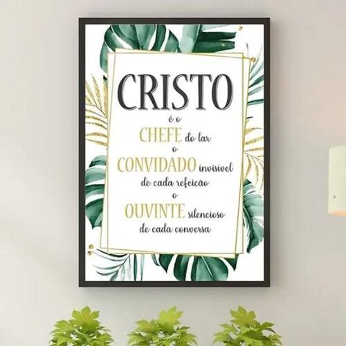 Quadro decorativo cristo é o chefe do lar 33x24cm Cor: moldura branca Informações do produto tire todas as suas dúvidas no descritivo abaixo: decoração para quarto, sala, cozinha, escritório, área gourmet e muito mais. Chega de paredes vazias medidas - cada peça tem 33x24cm a4 . Material do papel - papel fotográfico brilhante de altíssima resolução acabamento - todos os quadros são acompanhados de uma película de acetato para proteção da imagem. - os quadros são embalados de forma segura com plástico bolha com camada dupla de acordo com o tamanho dos quadros. Garantia - garantia de 3 meses. Meu quadro chegou. Como posso fixá-lo Você precisa apenas de um martelo e um prego, pois os quadros já vão acompanhados de penduradores. Esta é a forma mais indicada. Caso prefira, você pode utilizar uma fita dupla face neste caso, sugerimos de alta qualidade para evitar que descole e seu quadro caia . Como posso limpar meu quadro A limpeza é feita como um móvel comum da sua casa. Apenas um pano seco ou espanador são suficientes para tal