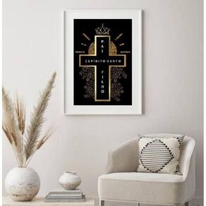 Quadro decorativo cruz santíssima trindade - 60x48cm Moldura: madeira branca Informações do produto tire todas as suas dúvidas no descritivo abaixo: decoração para quarto, sala, cozinha, escritório, área gourmet e muito mais. Chega de paredes vazias medidas - cada peça tem 60x48cm . Material do papel - papel fotográfico brilhante de altíssima resolução acabamento - todos os quadros são acompanhados de vidro para proteção da imagem. - moldura em madeira maciça na cor preta ou branca conforme produto escolhido e pendurador. - paspatur branco com 7cm de largura - os quadros são embalados de forma segura com plástico bolha com camada dupla de acordo com o tamanho dos quadros. Garantia - garantia de 3 meses. Meu quadro chegou. Como posso fixá-lo Você precisa apenas de um martelo e um prego, pois os quadros já vão acompanhados de penduradores. Esta é a forma mais indicada. Como posso limpar meu quadro A limpeza é feita como um móvel comum da sua casa. Apenas um pano seco ou espanador são suficientes para tal Ean: 7890414491678