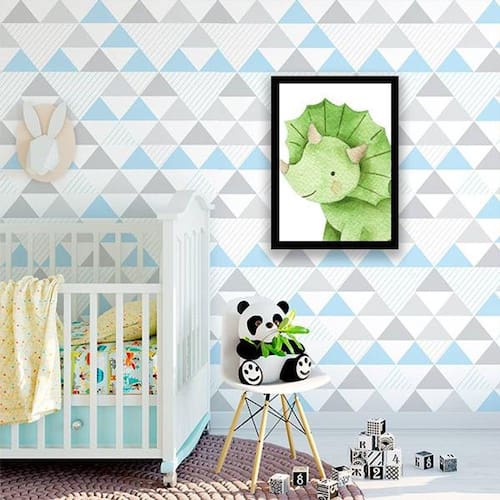 Quadro Decorativo Decorativo Infantil Dinossauro Baby Verde - Tamanho: A4 (20 x 30) / Acabamento: Película de acetato / Moldura: Madeira preta