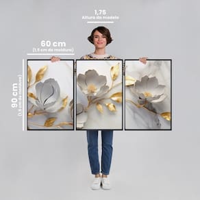 Quadro Decorativo Delicado Modelo Floral Branco e Dourado Abstrato com 3 Telas 50x75cm ou 60x90cm para Sala, Quarto, Banheiro, Escritório, Hall, Hall de Entrada, Estúdio, Salão, Clínica. Especificações Técnicas:Modelo: Floral Branco e Dourado;Material da Imagem: Papel premium fotográfico de alta qualidade;Material da Moldura: Madeira de reflorestamento revestida;Espessura da Moldura: 2,7cm de profundidade e 1,5cm frontal;Medidas: 50x75cm ou 60x90cm;Acabamento: Fita Kraft;Acompanha: Suporte de serrilha para quadros e parafusos.Transforme seu espaço com elegância e sofisticação! Não perca a oportunidade de adquirir o exclusivo Quadro Decorativo Floral Branco e Dourado Abstrato com 3 Telas a um preço incrível. Acompanha Fixação para Parede: Sim Ambiente Principal: Jardim e Varanda Espessura: 28 mm Itens Inclusos: 3 Quadros e Suporte para Fixação Marca: ARTE PRÓPRIA Material Principal: Madeira Maciça Origem do Produto: Nacional Peso: 10 kg Possui Paspatur: Não Possui Vidro: Não Tema da Estampa: Floral Tipo de Quadro: Quadro Marca: Não Informado