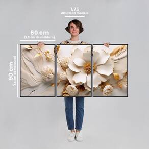 Quadro Decorativo Delicado Modelo Floral Branco e Dourado Abstrato com 3 Telas 60x90cm para Sala, Quarto, Banheiro, Escritório, Hall, Hall de Entrada, Estúdio, Salão, Clínica. Especificações Técnicas:Modelo: Floral Branco e Dourado;Material da Imagem: Papel premium fotográfico de alta qualidade;Material da Moldura: Madeira de reflorestamento revestida;Espessura da Moldura: 2,7cm de profundidade e 1,5cm frontal;Medidas: 60x90cm;Acabamento: Fita Kraft;Acompanha: Suporte de serrilha para quadros e parafusos.Transforme seu espaço com elegância e sofisticação! Não perca a oportunidade de adquirir o exclusivo Quadro Decorativo Floral Branco e Dourado Abstrato com 3 Telas a um preço incrível. Acompanha Fixação para Parede: Sim Ambiente Principal: Jardim e Varanda Espessura: 28 mm Espessura do Vidro: 3 mm Itens Inclusos: 3 Quadros e Suporte para Fixação Marca: ARTE PRÓPRIA Material Principal: Madeira Maciça Origem do Produto: Nacional Peso: 12 kg Possui Paspatur: Não Possui Vidro: Sim Tema da Estampa: Floral Tipo de Quadro: Quadro Marca: Não Informado