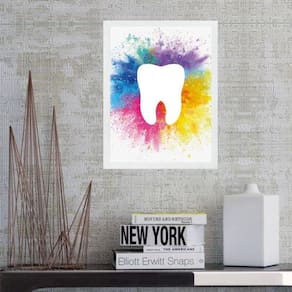 Quadro decorativo dente aquarela 24x18cm - com vidro Moldura: madeira branca Informações do produto tire todas as suas dúvidas no descritivo abaixo: decoração para quarto, sala, cozinha, escritório, área gourmet e muito mais. Chega de paredes vazias medidas - cada peça tem 24x18cm a5 . Material do papel - papel fotográfico brilhante de altíssima resolução acabamento - todos os quadros são acompanhados de vidro para proteção da imagem. - moldura em madeira maciça na cor preta ou branca conforme produto escolhido e pendurador . - os quadros são embalados de forma segura com plástico bolha com camada dupla de acordo com o tamanho dos quadros. Garantia - garantia de 3 meses. Meu quadro chegou. Como posso fixá-lo Você precisa apenas de um martelo e um prego, pois os quadros já vão acompanhados de penduradores. Esta é a forma mais indicada. Como posso limpar meu quadro A limpeza é feita como um móvel comum da sua casa. Apenas um pano seco ou espanador são suficientes para tal