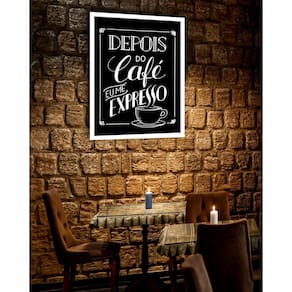 Quadro decorativo depois do café eu me expresso - 70x50cm Cor: moldura branca Informações do produto tire todas as suas dúvidas no descritivo abaixo: decoração para quarto, sala, cozinha, escritório, área gourmet e muito mais. Chega de paredes vazias medidas - cada peça tem 70x50cm . Material do papel - papel fotográfico brilhante de altíssima resolução acabamento - todos os quadros são acompanhados de vidro para proteção da imagem. - moldura em madeira maciça na cor preta ou branca conforme produto escolhido e pendurador. - os quadros são embalados de forma segura com plástico bolha com camada dupla de acordo com o tamanho dos quadros. - de 3 meses. Meu quadro chegou. Como posso fixá-lo Você precisa apenas de um martelo e um prego, pois os quadros já vão acompanhados de penduradores. Esta é a forma mais indicada. Como posso limpar meu quadro A limpeza é feita como um móvel comum da sua casa. Apenas um pano seco ou espanador são suficientes para tal Marca: Não Informado