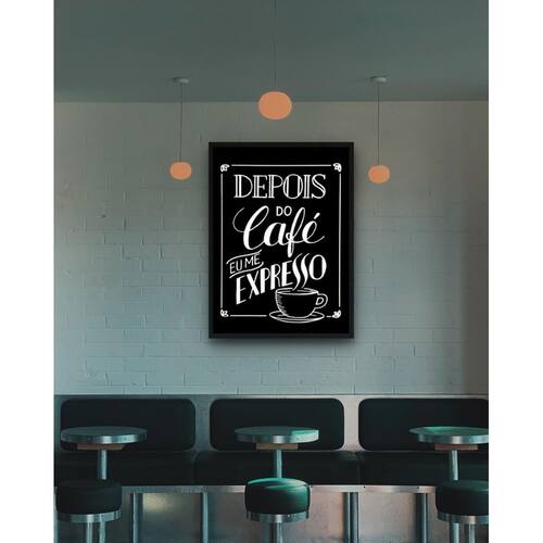 Quadro decorativo depois do café eu me expresso - 70x50cm Cor: moldura branca Informações do produto tire todas as suas dúvidas no descritivo abaixo: decoração para quarto, sala, cozinha, escritório, área gourmet e muito mais. Chega de paredes vazias medidas - cada peça tem 70x50cm . Material do papel - papel fotográfico brilhante de altíssima resolução acabamento - todos os quadros são acompanhados de vidro para proteção da imagem. - moldura em madeira maciça na cor preta ou branca conforme produto escolhido e pendurador. - os quadros são embalados de forma segura com plástico bolha com camada dupla de acordo com o tamanho dos quadros. - de 3 meses. Meu quadro chegou. Como posso fixá-lo Você precisa apenas de um martelo e um prego, pois os quadros já vão acompanhados de penduradores. Esta é a forma mais indicada. Como posso limpar meu quadro A limpeza é feita como um móvel comum da sua casa. Apenas um pano seco ou espanador são suficientes para tal Marca: Não Informado