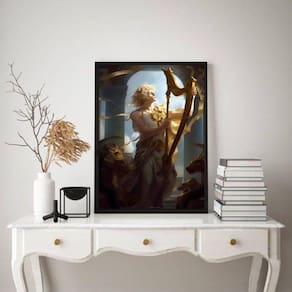 Quadro decorativo deus da música- apolo 24x18cm - com vidro Moldura: madeira preta Informações do produto tire todas as suas dúvidas no descritivo abaixo: decoração para quarto, sala, cozinha, escritório, área gourmet e muito mais. Chega de paredes vazias medidas - cada peça tem 24x18cm a5 . Material do papel - papel fotográfico brilhante de altíssima resolução acabamento - todos os quadros são acompanhados de vidro para proteção da imagem. - moldura em madeira maciça na cor preta ou branca conforme produto escolhido e pendurador . - os quadros são embalados de forma segura com plástico bolha com camada dupla de acordo com o tamanho dos quadros. Garantia - garantia de 3 meses. Meu quadro chegou. Como posso fixá-lo Você precisa apenas de um martelo e um prego, pois os quadros já vão acompanhados de penduradores. Esta é a forma mais indicada. Como posso limpar meu quadro A limpeza é feita como um móvel comum da sua casa. Apenas um pano seco ou espanador são suficientes para tal Ean: 7894634943573