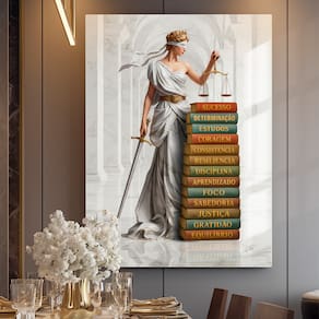 Quadro Decorativo Deusa da Justiça Livros Moldura Dourada - 150x100cm -