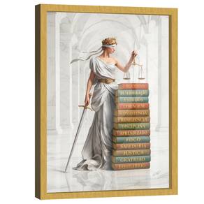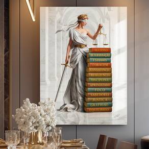 Quadro Decorativo Deusa da Justiça Livros Moldura Dourada - 180x105cm -