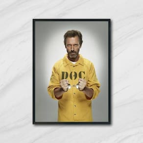 Quadro Decorativo Doctor House Preso - Tamanho: A4 (20 x 30) / Acabamento: Película de acetato / Moldura: Madeira preta