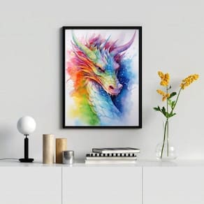 Quadro decorativo dragão colorido aquarela 45x34cm Moldura: madeira preta Informações do produto tire todas as suas dúvidas no descritivo abaixo: decoração para quarto, sala, cozinha, escritório, área gourmet e muito mais. Chega de paredes vazias. Medidas - cada peça tem 45x34cm a3 . Material do papel - papel fotográfico brilhante de altíssima resolução acabamento - todos os quadros são acompanhados de uma película de acetato para proteção da imagem. - os quadros são embalados de forma segura com plástico bolha com camada dupla de acordo com o tamanho dos quadros. Garantia - garantia de 3 meses. Meu quadro chegou. Como posso fixá-lo Você precisa apenas de um martelo e um prego, pois os quadros já vão acompanhados de penduradores. Esta é a forma mais indicada. Caso prefira, você pode utilizar uma fita dupla face neste caso, sugerimos de alta qualidade para evitar que descole e seu quadro caia . Como posso limpar meu quadro A limpeza é feita como um móvel comum da sua casa. Apenas um pano seco ou espanador são suficientes para tal Ean: 7896666113702