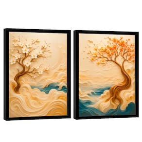 Quadro Decorativo Duo Árvore da Sabedoria 3D Moldura Preta - 118x78cm -