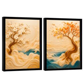 Quadro Decorativo Duo Árvore da Sabedoria 3D Moldura Dourada - 118x78cm -