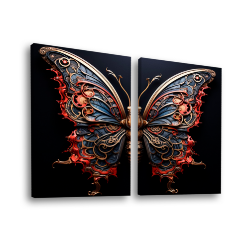 Dupla de Quadros Borboleta Azul Vermelha -- BR ARTES Borda Infinita - Médio 84x54 -