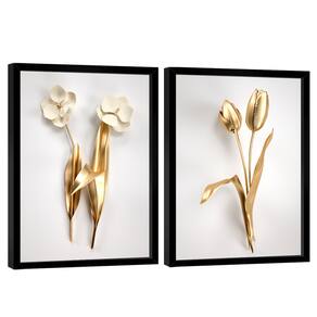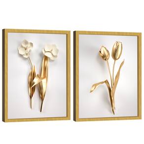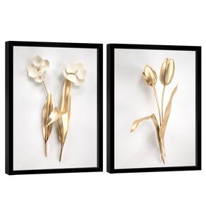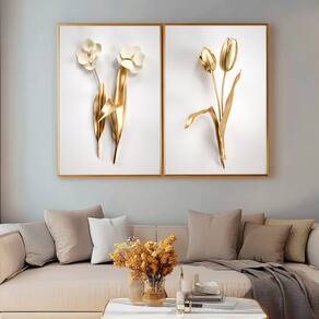 Quadro Decorativo Duo Flores de Ouro Moldura Preta e Vidro - 118x78 -