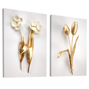 Quadro Decorativo Duo Flores de Ouro Borda Infinita - 60x40 -
