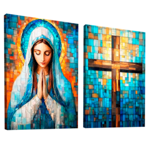 Quadro Decorativo Duo Maria e Cruz em Grid Art Borda Infinita - 84x54 -
