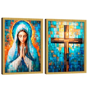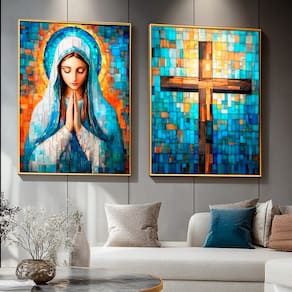 Quadro Decorativo Duo Maria e Cruz em Grid Art Moldura Dourada e Vidro - 84x54 -